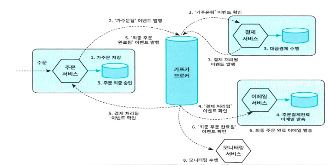 → 북미의 블랙 프라이데이(Black Friday) 같은 대규모 쇼핑 이벤트를 생각해 보면 수만 개의 주문이 발생하는데 결제 서비스에서 타사 외부 연동 장애가 발생해 더는 주문을 받을 수 없는 상황이 발생할 수도 있는데 이러한 상황을 고려했을 때 비즈니스 관점에서 보면 주문과 결제, 이메일 전송을 순차적으로 처리하기보다 무조건 먼저 주문을 많이 받아 놓는 것이 좋을 수 있음